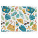 Vibrant seamless summer pattern gift bag featuring straw hats, sunglasses, tote bags, sunscreen, flip flops, tropical leaves, and flowers on a clean white background. Ideal for beach lovers, vacation fans, tropical style enthusiasts, and anyone who loves sunny summer aesthetics.