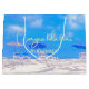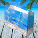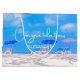 Beach scene illustration with blue skies, sandy shores, and relaxing beach chairs - perfect for retirement party celebrations. Inspired by a Mediterranean beach photo, this painterly design captures the relaxed coastal lifestyle of retirement. Ideal for honoring someone's transition to a life of leisure and beach living. Customizable with name. Great for beach-themed retirement celebrations and seaside party invitations.