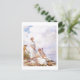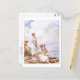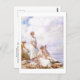 A fine art postcard with the painting by Charles Courtney Curran (1861-1942), Summer Clouds (1917). An American Impressionist painter of figures and landscapes. The painting showcases three women, adorned in white attire, one standing and two seated on a cliff against the backdrop of a cloudy blue sky.