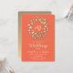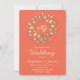 Enkel, minimalistisk, modern, roligt korallsommarbröllopsinbjudan med ett unikt stort guld sol monogram.