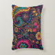 Vibrant Summer Floral Paisley Pattern accent pillow featuring, yellow, pink and blue flowers incorporated into a paisley pattern. Ideal for bedrooms, hobby rooms and home.