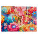 Giftpåse med en färgfull samling av vår och sommarblommor. Rosa orange och blått dominerar färg. Ljusstark och djärv blommigt arrangemang utrotar lycka. :