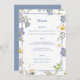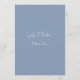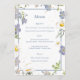 Sommarblommor Blå Bröllop-menu designad med petitblommor i blå och vit nyans, med gult. Texten på framsidan innehåller: Meny, Appetizer, Entre och Dessert Selections. Den omvända texten innehåller: Bride och Groom's First Namn och Bröllop Date på en mjuk blå bakgrund. Om du vill anpassa dig infogar du bara informationen på menyn Bröllop i vår enkla mall och ersätter exempeltexten. Se till att du hittar matchningskort och tillbehör i hela sommarblommorna Blue Bröllop-samlingen.