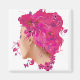 Sommarflicka - vacker kvinna med sommarsymboler i sitt långa hår, rosa blommor grenar blad och fjäril