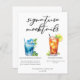 Den här chicen namnteckning mocktails Meny lakan har enkel svart typografi över 2 söta drycker och deras ingredienser för din sommartid i bröllop pub. En Blue Hawaiian Sunrise-dryck och alkoholfri Arnold Palmer-dryck tillför coola till pub-menyn. Fyll i med parets namn och mottagningsdatum.