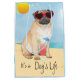 Det är ett hund liv! Var coola och fira sommarens hund med denna söta pug med solglasögon och avslappning med en drink.