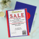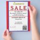 Jewelry or any business type supplies. Patriotic red, white and blue background. Insert Sale price and date details. Upload Your Logo, or delete to leave area blank. Insert Name and Website, Social Media Handle, or other contact QR Code. Summer written in yellow script. Sale written in large red typography. Thank You is written in white inside large red heart against deep blue background on backside. Original Design by TamiraZDesigns.