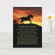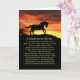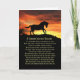 Sommarsolkort med en vacker silhuetterad häst under den längsta solnedgången. En välsignelse, dikt, sänder underbara avsikter om denna underbara sabbat.