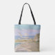 Transport dig till en sommardags serenhaltiga kustblister med den här konsttryckningen till väskan, som fångar kärnan av en stillastående strandscen. De mjuka pastellhuvorna blått, rosa, lila, tan och krämer framkallar en lugnande aura av en kustsolnedgång eller soluppgång, där havets milda surfa kysser kusten. När fiskmås dansar på varm sommarbryggning kapslar den här tryckningen in själva kärnan av en avslappnande dag vid stranden med ett sött litet strandhus nära. Du kan lägga till ett monogram eller en personlig fras för att göra det unikt för dig, så att detta kustmästerverk kan resonera med dina egna minnen och erfarenheter. Cute Abstrakt Pastel Summer Beach Sunset Tote Bag Gift Lila Blue Tan