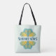 Cute-sommarpåse med en vacker illustration av två fjärilar i blått och gult och roligten Summer Vibes.