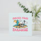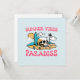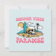 Det här hälsningskortet visar en skalle i sanden och frasen "Sommar Vibes Paradise". Det är idealiskt för att fånga surfer stil, strandviber och sommartid äventyr.