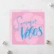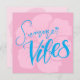 Bright summer postcard featuring handlettered “Summer Vibes” in vibrant blue on a soft pink background with a faded hibiscus flower. Perfect for sending cheerful greetings, vacation notes, or tropical vibes.