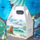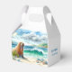 Sommarviberna föredrar lådor med en vattenfärgad valrus på stranden. Anpassade.
