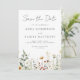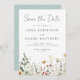 Den här designen har en vattenfärg gräns på vilda blommor i skuggor av guld, rött, blått och grönt. Perfekt för vår och sommar-bröllop.