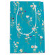 An abstract design featuring delicate summer wildflower bouquets set against a striking aqua blue background.