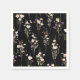 An abstract design featuring delicate summer wildflower bouquets set against a striking black background.