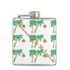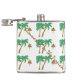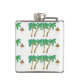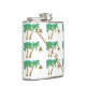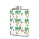 Mosaik, grafiskt teckning, av en ö, med två, kokokokosnöt träd, och hut, med frasen "Summering i Tropikarna"-i färg av grönt, gult, turkos, blått, taupe, brun och svart.