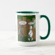 Ett mugg med en lustig tecknad om klimatförändringar. Bilden, bakgrunden och texten kan vara personlig. Originalteckningar efter DBcartoons.