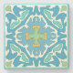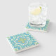 Den här vackra kalkstenen underlägg en exotisk utformning av den spanska plattan i akvariet, med orange och grönt i vit bakgrund. Det är perfekt för drycker i närheten av torget eller bassäng.