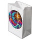 This vibrant gift bag showcases a beautifully illustrated celestial scene where the radiant Sun and serene Moon meet in cosmic elegance. Rich, swirling colors of turquoise, magenta, gold and deep indigo evoke a dreamy starry‑night atmosphere.