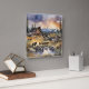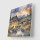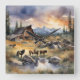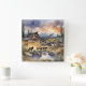 A watercolor painting of the sun set at and old large barn in the wilderness that looks long forgotten but maybe not forgotten by a pack of wolf's who seem to be stopping at a small watering hole. This clock is full of wonder and color. It will make great wall art anime decor.