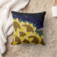 Solblommor dekorativ kudde med en underbar bild av skördefolk med solrosblomma fält. Med gult, blått och brunt färg är det här objektet perfekt för din skörd eller land hemdekaler.