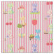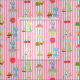 I Mönster ingår Sunbonnet Sue i trädgården på rosa och vit strimlad bakgrund.