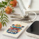 Front and center is the funky, feel-good quote, wrapped in sunny beach elements: a cool cartoon sun rocking shades, swaying palm trees, vintage surfboard, rolling ocean waves, and cheerful tropical accents like starfish and hibiscus blooms. It’s a whole summer mood — radiating happiness, heat, and high tides.
