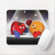 Mousepad som presenterar ett äpple, och en orange på en boxning matchar.