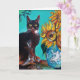 SUNFLÖDEN MED SVART KAT I BLÅSOVK KORT