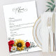 Sunflower and Red Rose Floral Wedding Menu