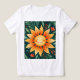 The image shows an illustration of a sunflower flower with a smiling face, surrounded by leaves and small flowers.
