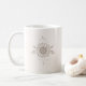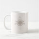 A delicate minimalist design featuring a sunflower combined with celestial elements like the moon and stars.