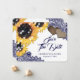 Elegant navy blue and sunflower wedding save the date card featuring sunflower flowers, string lights, burlap hearts and delicate floral lace. Our floral wedding save the date card is perfect for a navy blue rustic country, backyard, or barn wedding party inspired by sunflowers.