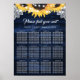Sunflower Navy Blue Wood Wedding Seating Chart 12 Poster