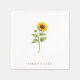 Single Sunflower stem personalized names cocktail napkins. Wedding. Gold text. Yellow floral.