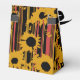 Present your wedding favors in style with these bold modern sunset coral and gold sunflower favor boxes finished with an elegant black ribbon bow. This striking design features artistic sunflower silhouettes with integrated coral accents and luxe striped patterns, plus clean modern typography displaying your names and wedding date. Simply upload your favorite engagement or pre-wedding photo to create a truly personalized keepsake your guests will treasure.
