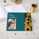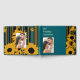 Preserve your guests' heartfelt messages in this bold modern teal blue and gold sunflower guestbook. This striking design features your favorite engagement or pre-wedding photo as the hero element on the cover, beautifully framed in gold and surrounded by artistic sunflower silhouettes with integrated teal accents and luxe striped patterns. Your names and wedding date are elegantly displayed on the spine.