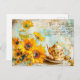Sunflower with Antique Coffee Pot and Fantasy text Vykort