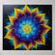 Den här vita poster har en pulserande multifärgad solrosmandala. Avslutat som ett färgtryck av oljefärg.