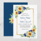 De här bröllopsinbjudningarna har en modern blommigt med solblommor, vatten och marint blått ro med faux guld gräns. Anpassa dem med din egen text.