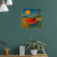 Den här levande surrealistiska digitala målningen har en enorm målningspensel som planterats vid en halverad röd vattenmelon, som slår samman natur och kreativitet i en lekfull, drömliknande sammansättning. En stor gult sol blazar i ett texturerat, blåstrejkat himmel, som kastar värme över ett vidsträckt, minimalistiskt landskap som målas i flytande gröntar, blåsor och . Scenen blandar stollig med ett symboliskt djup, vilket antyder en värld där skapande och verklighet är oskiljaktigt sammanflätade.
