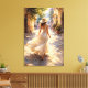 This high-resolution 8K art print masterfully simulates the visual depth and texture of a traditional oil painting, featuring a woman in a flowing white dress walking through a sun-drenched European street. While the surface of this 20x30 stretched canvas is completely flat to the touch, the artwork utilizes a professional visual effect to create the stunning appearance of heavy brushstrokes and textured knife marks. Part of the Gilded Canvas series by AlchemistDigitalArt, this piece captures a radiant, warm glow that brings a sophisticated, fine-art atmosphere to any room.