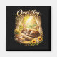 A cozy ginger cat naps beside warm tea and books in a flower-filled window glowing with peaceful morning light.