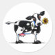Hämta lycklig med den här originalbilden av bläck och blyertspennan med en mjölkko som klämmer en solrosa av Andie of Off-Leash Art™.