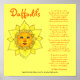 Skriv ut Nicely Noobeegins "Sunny Daffodil". Utformningen är omgiven av en gults bakgrund. Utskriften trimmas med en gyllene orange gräns. Dikt "Daffodils" av William Wordsworth trycks på utseendesidan.