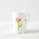 En Bone-China Mugg med ett original av Mango Måne Studio-daisy som illustrerar tjusiga lavender, solig gult, vibrerande rött och lugnande blått nyanser som fångar vår innersta väsen.
