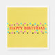 Sunny gult med turkosblått, rosa, gult och svart polka dots. Grattis på födelsedagen är skrivet i röd text i mitten. Ljus, roligtens geometriska mönster för att fira vilken ålder som helst. Originaldesign © TamiraZDesigns.
