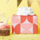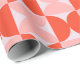The paper features a large-scale, mid-century modern geometric pattern consisting of half moons. The design uses a coordinated mix of muted coral set against a pale pink background. Perfect for birthdays, holidays, or everyday gifting, this design adds a joyful pop of color to any present—no extra embellishments needed.