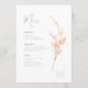 Den här chic bröllop-svit med den varma soliga färg-paletten, handskrivet skript och känsliga vildblomsarrangemang har ett tidlöst och sofistikerat utseende som imponerar på dina gäster och gör din speciella dag oförglömlig. Den här slående bröllop-menyn, som visas här på vit med en arrangemang av vildblommor. innehåller en mall som gör det enkelt att lägga till menyval. Sök i ID1023 om du vill se alla produkter i den här bröllop-sviten.